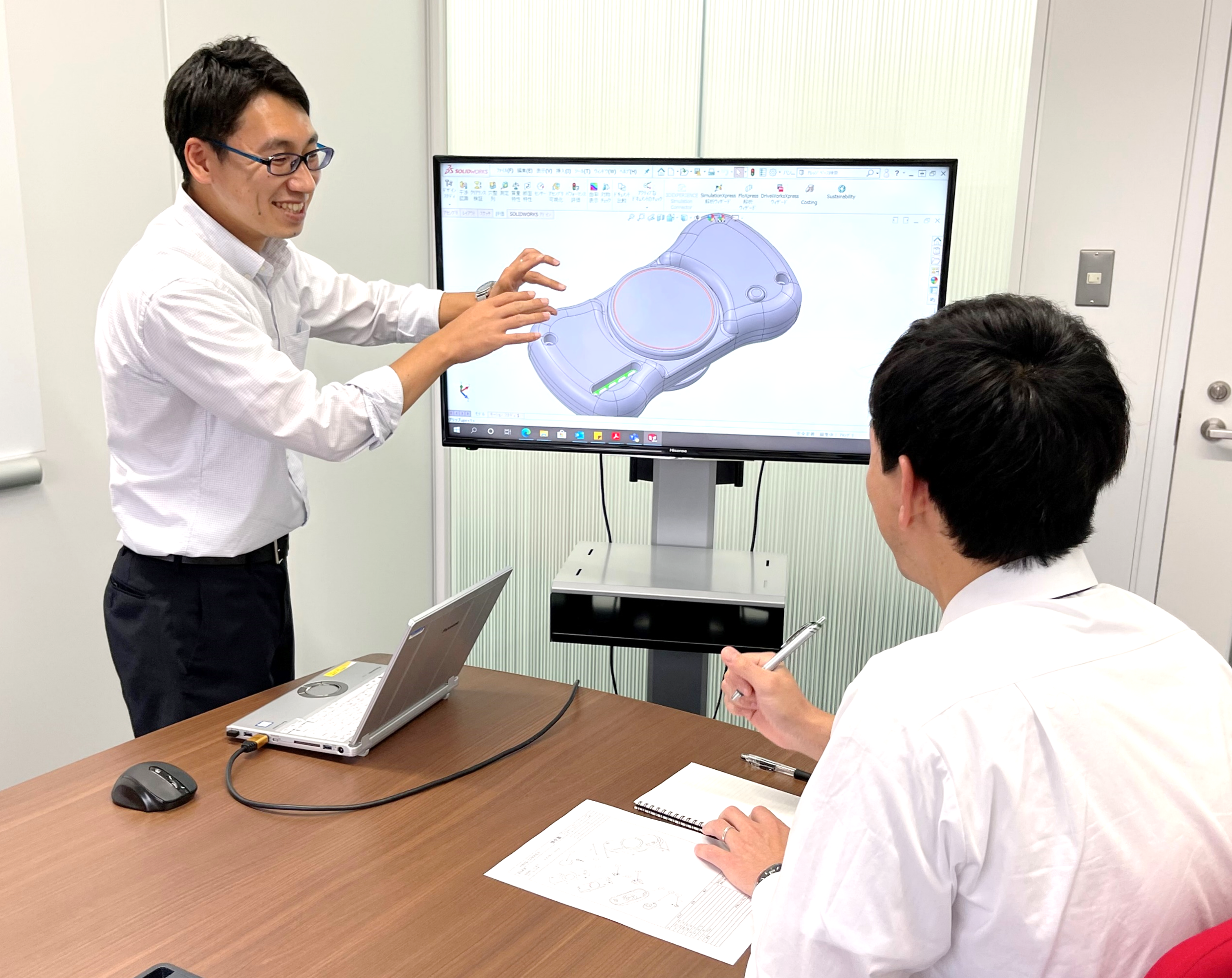 - 当社の技術職として、機械設計・電気設計・アプリ開発のいずれかの業務を担当していただきます。